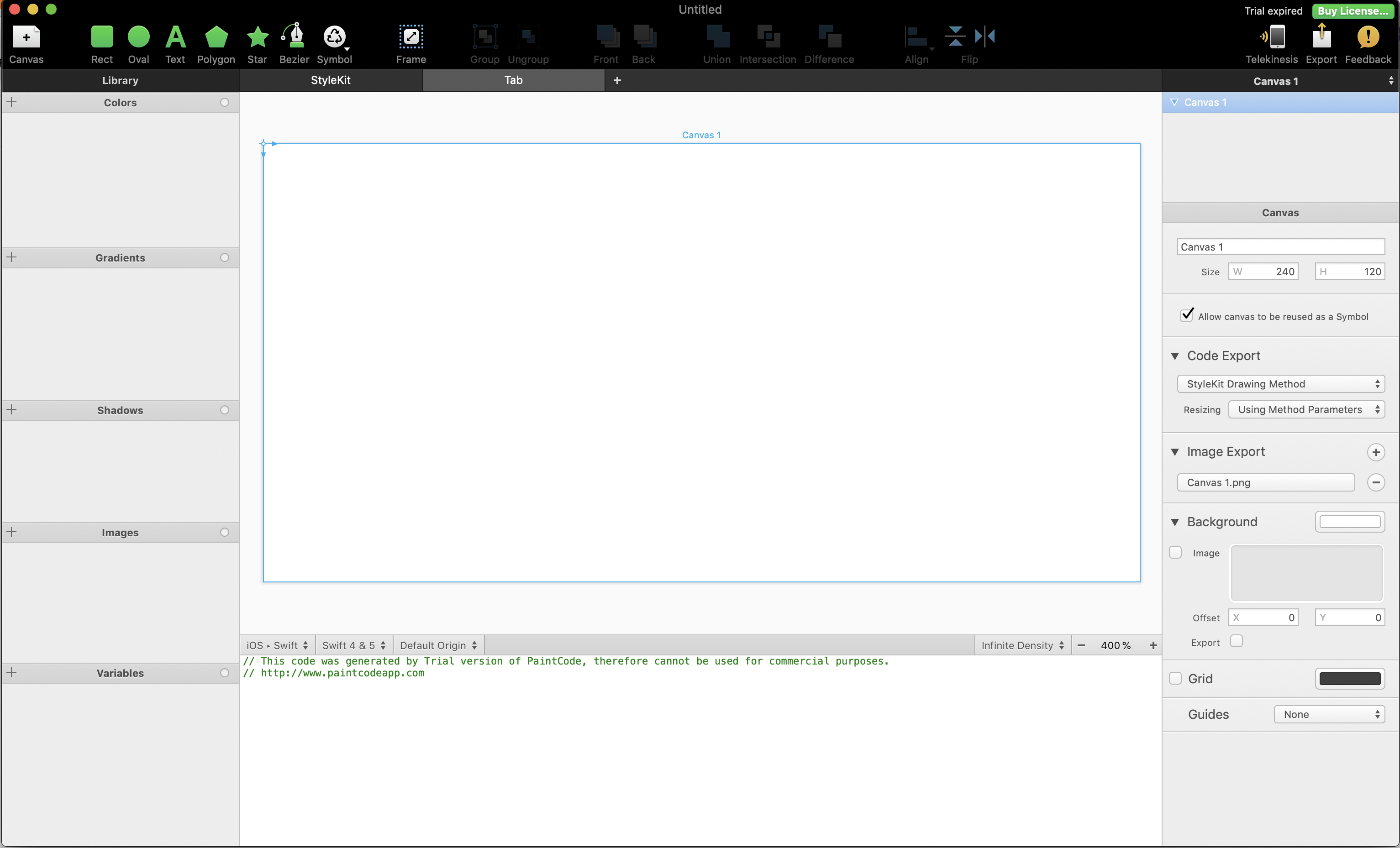 PaintCode를 다운로드 받고 실행하면 아래 화면이 뜹니다.