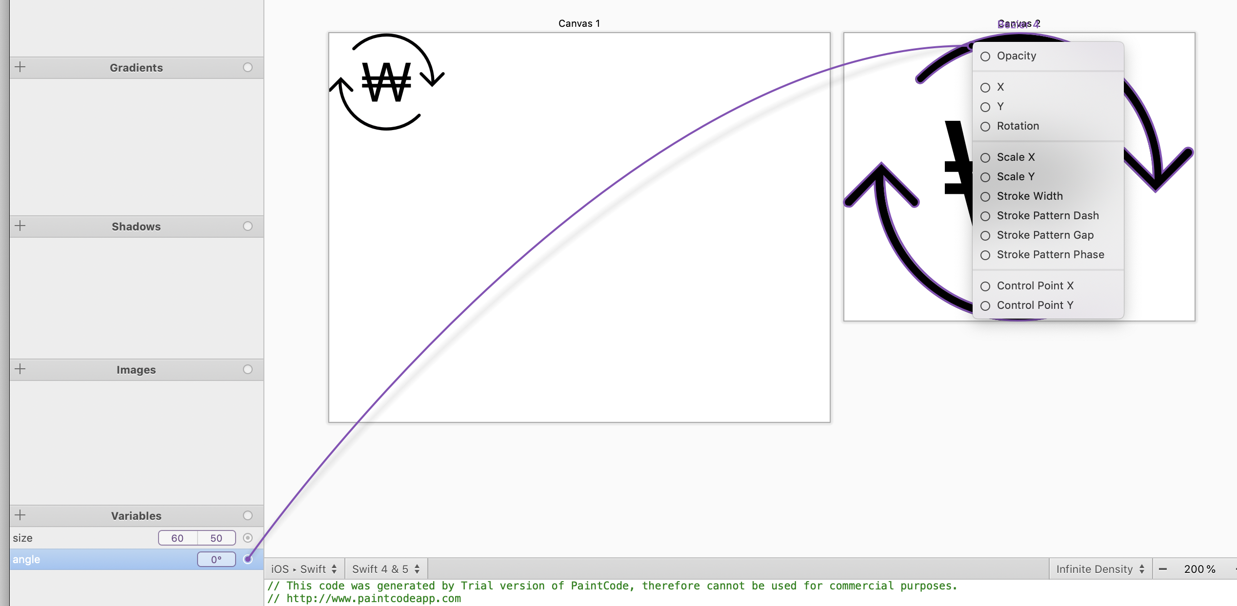 질문: PaintCode에서 Variable 은 어떻게 사용할 수 있나요?