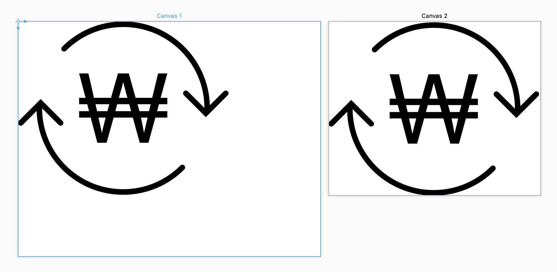 여기서 잘못 생각하면 안되는 것은 Canvas1, Canvas2 이름 때문에 다른 Canvas 라고 생각하면 안됩니다.