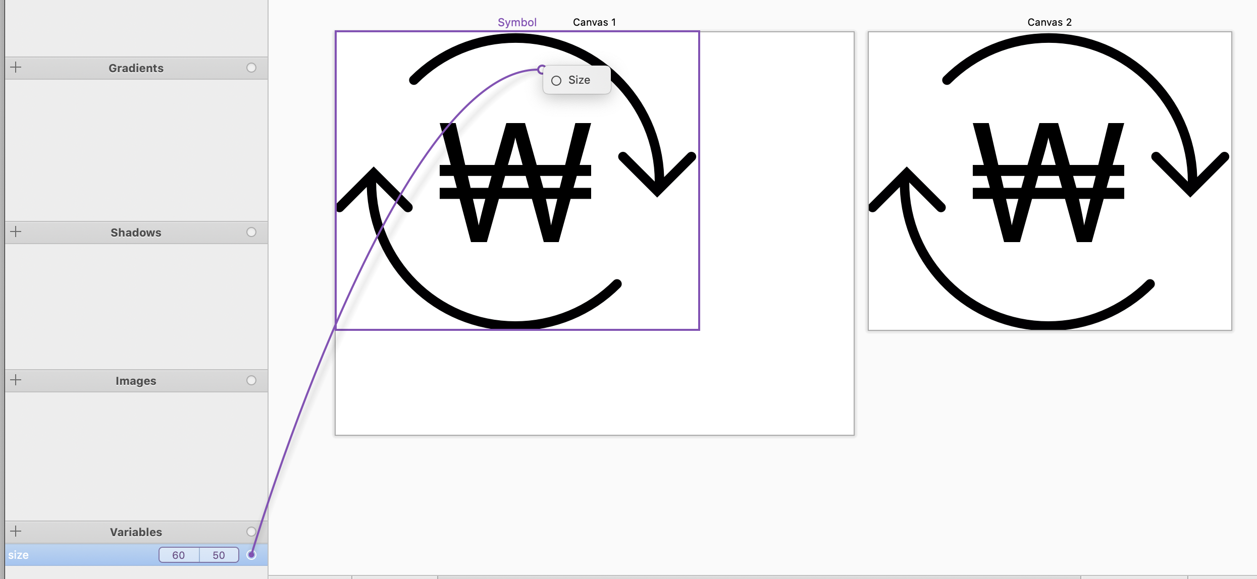 우리는 Size Variable 지정하기 위해 Symbol 로 변환하는 과정이 필요합니다.