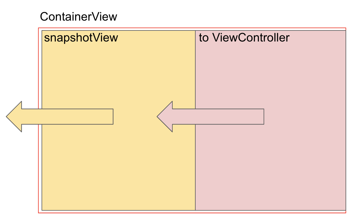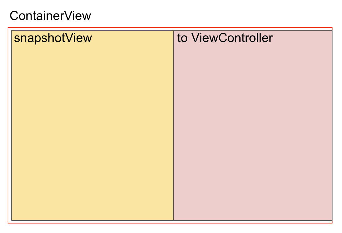 9. containerView 에 snapshotView, to ViewController를 넣어줍니다.