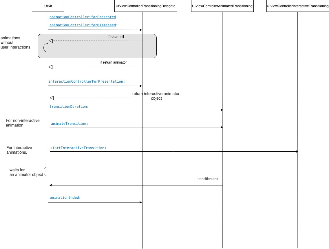 2. UIKit은 ViewController가 사용자 정의 Interactive animator object가 있는지 Query 합니다.
