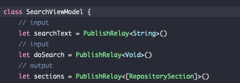위의 Input Output 의 UseCase 를 바탕으로 View와의 의존성이 없는 ViewModel 을 설계할 수 있습니다.