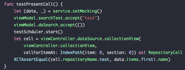 UICollectionCell 의 repositoryName text 가 "test" 인지?