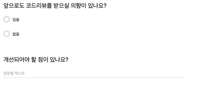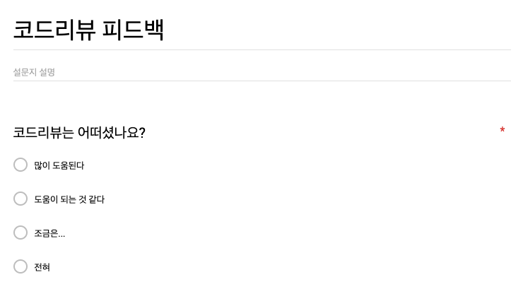 코드리뷰가 완료된 후 익명으로 구글 설문지 참여 할 수 있습니다.