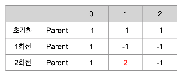 1. Parent 서브셋을 생성하고 -1로 초기화 합니다.