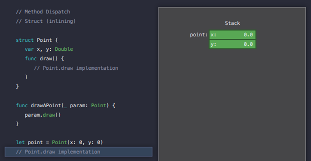 컴파일러가 어떤 구현이 실행 될지 정확히 알고 있으므로 실제로 drawAPoint 디스패치를 가져 와서 drawAPoint의 구현으로 대체 할 것입니다.