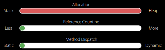 Struct 은 힙 할당이 없기 때문에 참조 카운트 오버헤드가 없습니다.