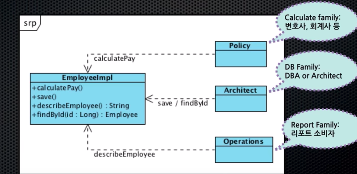 SRP 는 변경의 이유를 하나로 해야한다고 설명합니다.